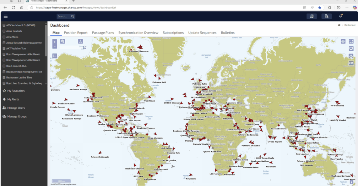 Vessel tracking and situational awareness FleetManager enables shoreside teams to monitor vessels worldwide using AIS and GPS tracking. Positions, movements, and deviations from passage plans – generated on board via PassageManager – are monitored, with alerts triggered when a ship deviates from its route or enters environmentally regulated waters and risk zones. Together, these solutions provide synchronised views that connect ship and shore, strengthening situational awareness, enabling proactive shoreside support, and reducing non-compliance risks.